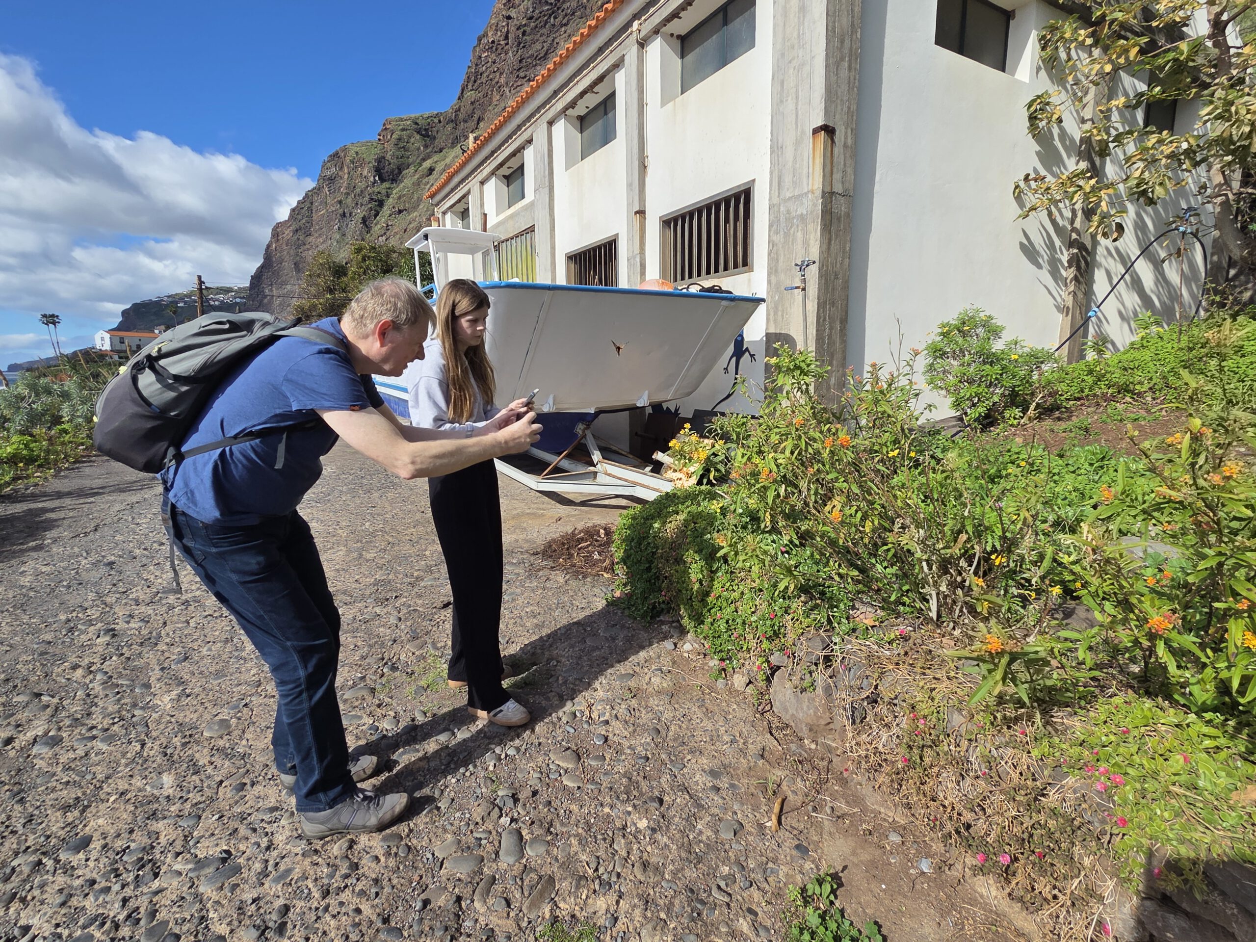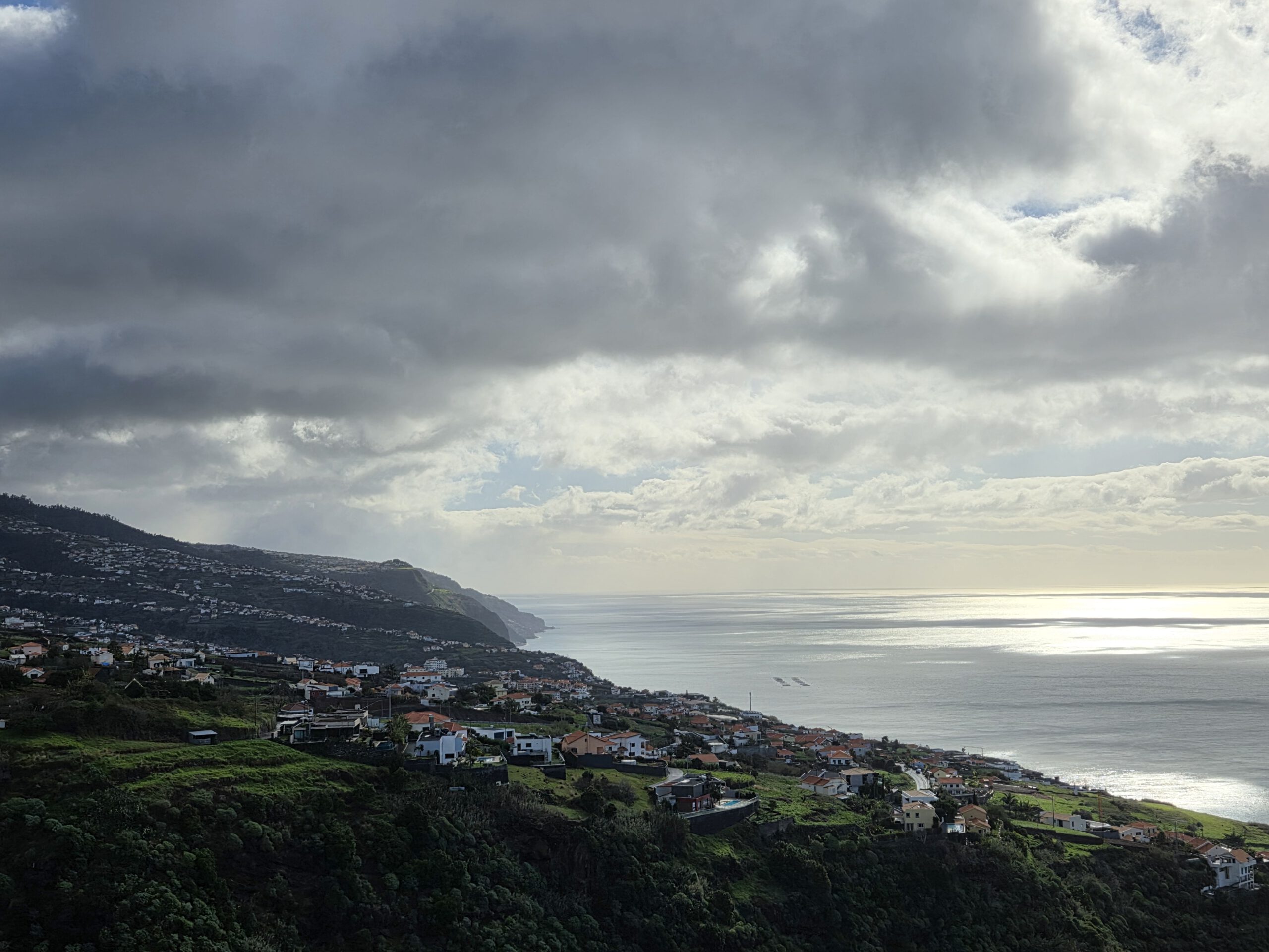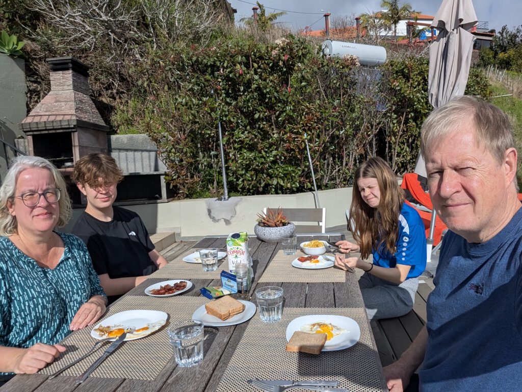 Nachts stürmt es, nachts regnet es. Morgens nieselt es und frisch ist es auch. Aber: die Klimaanlagen können auch heizen ... Und ganz hervorragend unsere Wäsche trocknen. Nicole schmökert sich weiter fest, in einem Krimi, den sie in der Vila Clementina im Regal gefunden hat. Louisa und Gerald lernen Mathe. Kilian chillt. Allerdings müssen wir noch einmal nach Funchal zu unserer ersten Unterkunft: Kilian hatte sein Original-Apple-Kabel dort vergessen, Vermieter Pedro hatte schon am Freitag zugesagt, es im zugänglichen Briefkasten zu deponieren. Doch als wir am frühen Nachmittag dort ankommen - ein leerer Briefkasten. Pedro bedauert, dass das Kabel noch nicht drin liegt, verspricht aber zu schauen...