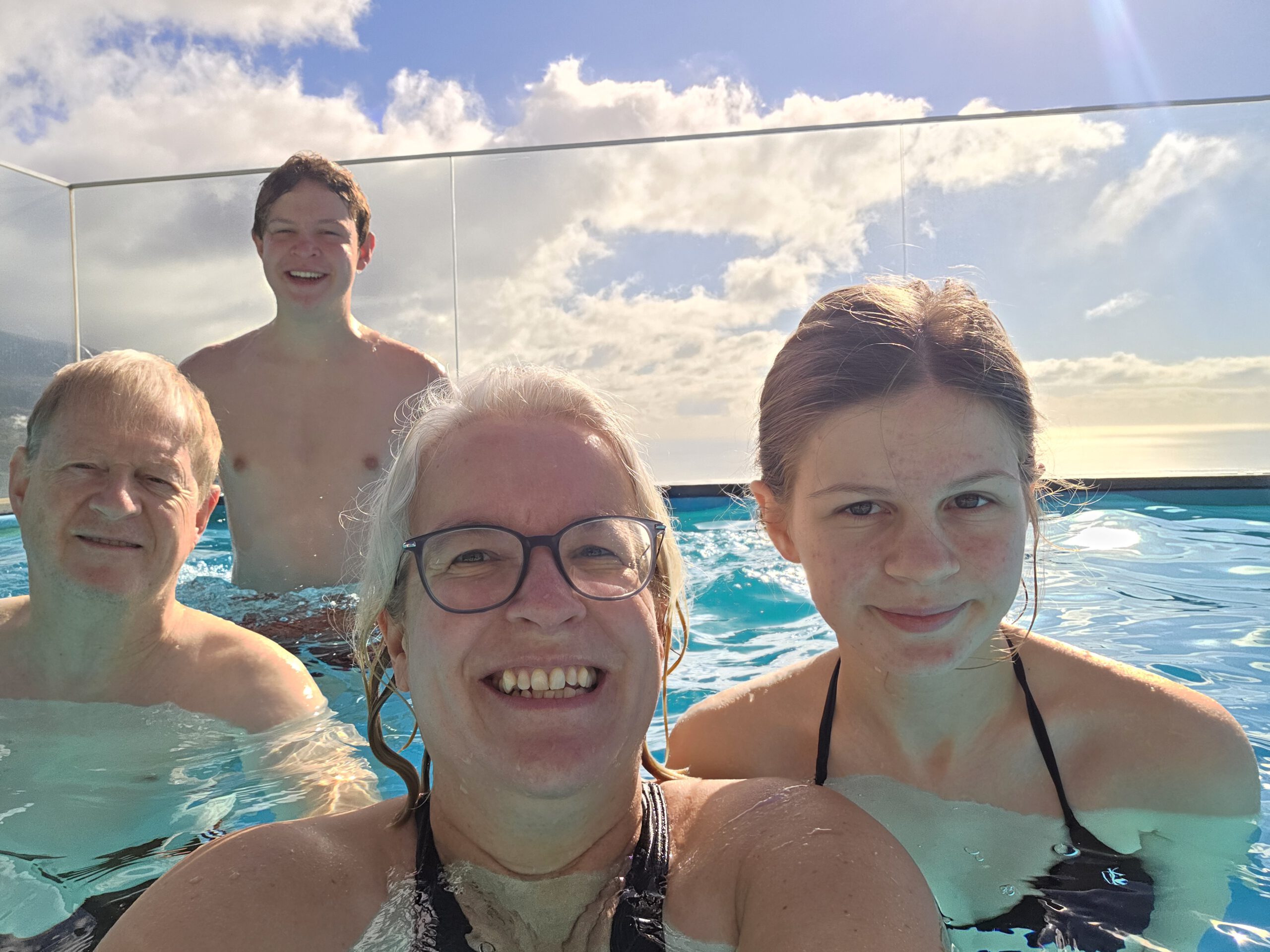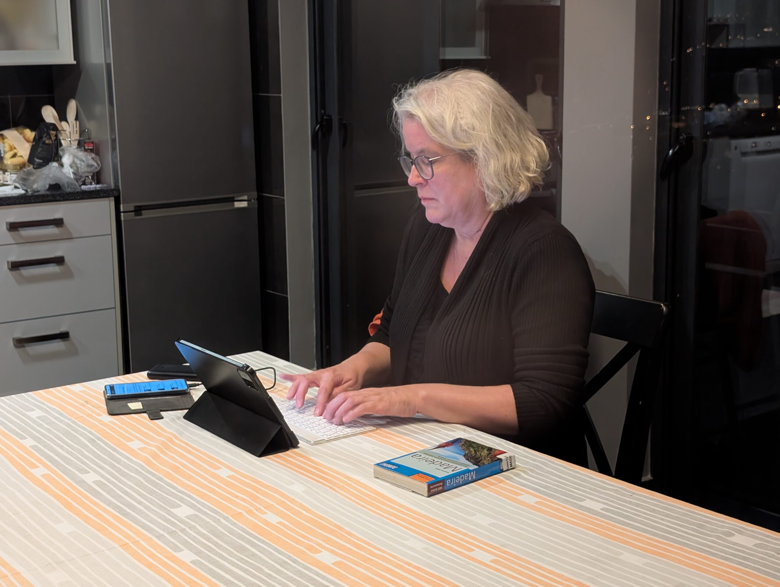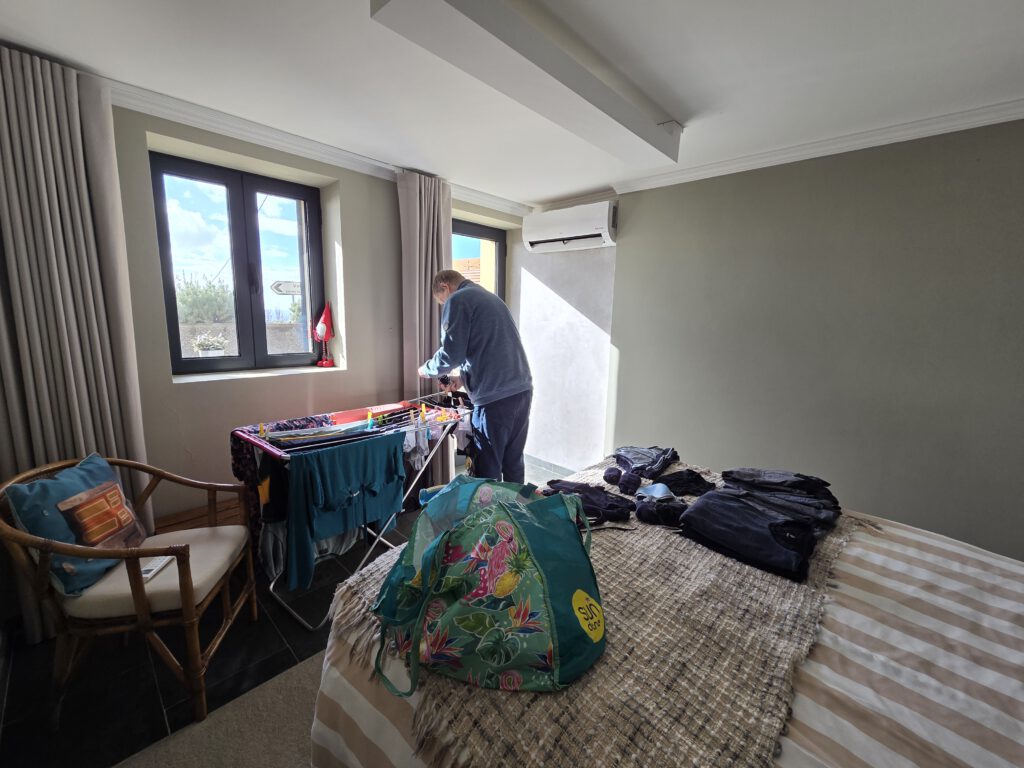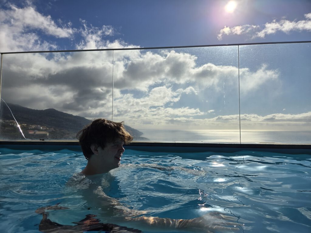 Nachts stürmt es, nachts regnet es. Morgens nieselt es und frisch ist es auch. Aber: die Klimaanlagen können auch heizen ... Und ganz hervorragend unsere Wäsche trocknen. Nicole schmökert sich weiter fest, in einem Krimi, den sie in der Vila Clementina im Regal gefunden hat. Louisa und Gerald lernen Mathe. Kilian chillt. Allerdings müssen wir noch einmal nach Funchal zu unserer ersten Unterkunft: Kilian hatte sein Original-Apple-Kabel dort vergessen, Vermieter Pedro hatte schon am Freitag zugesagt, es im zugänglichen Briefkasten zu deponieren. Doch als wir am frühen Nachmittag dort ankommen - ein leerer Briefkasten. Pedro bedauert, dass das Kabel noch nicht drin liegt, verspricht aber zu schauen...
