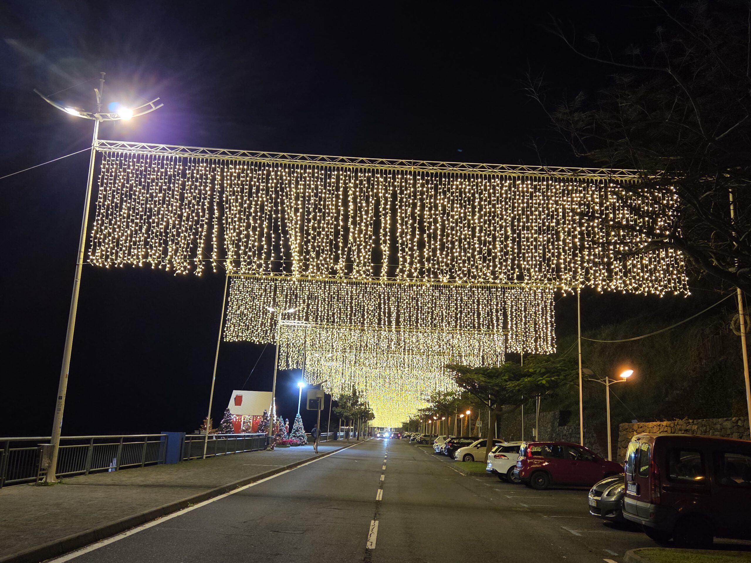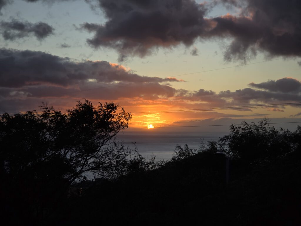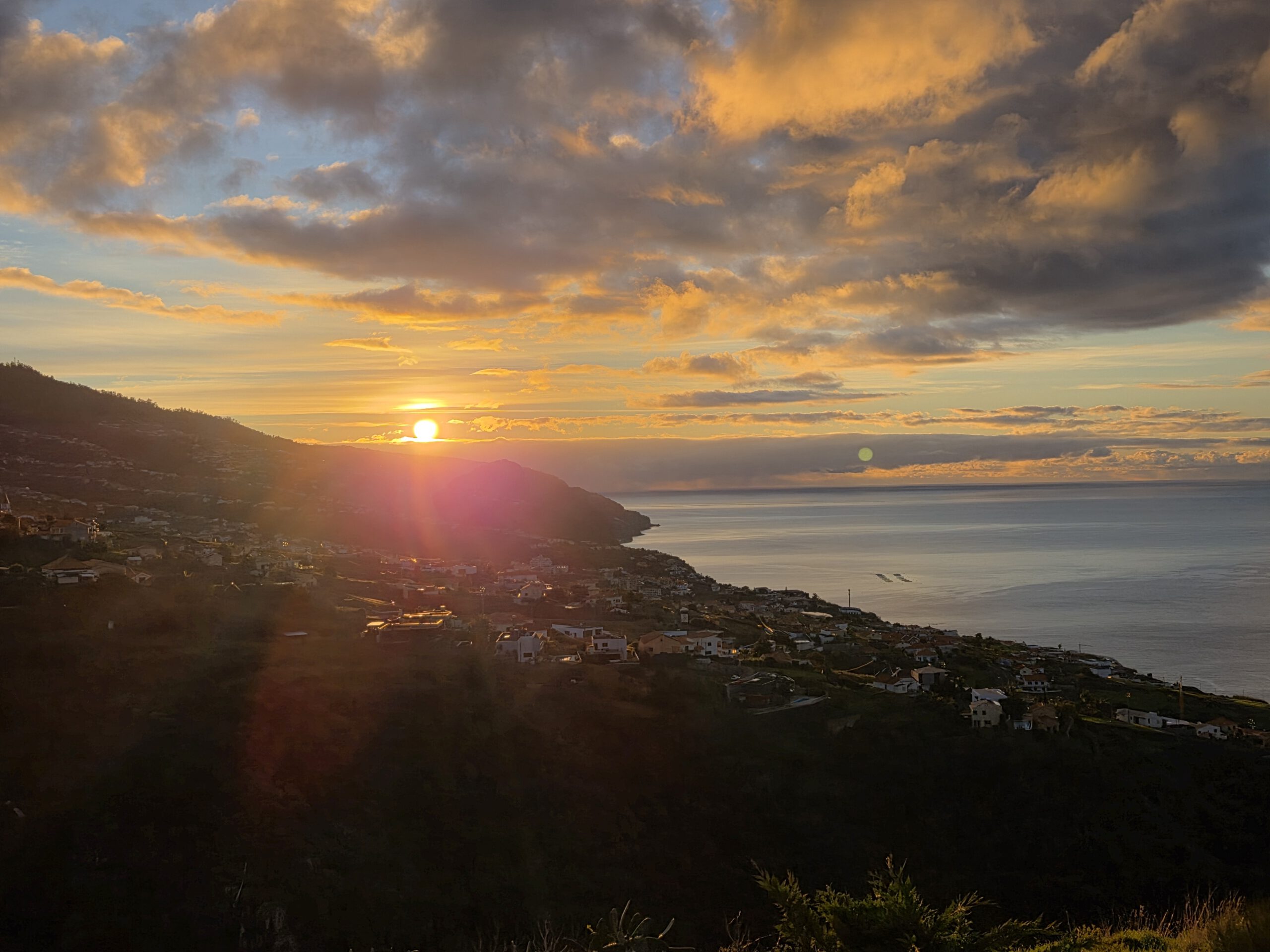 Zum Abendessen fahren wir dann durch nach Calheta, endlich ist die Küstenstraße nicht mehr gesperrt! Im Sonnenuntergang beobachten wir Schwimmer, Angler, Jogger und haben schließlich die Qual der Wahl zwischen den vielen Restaurants an der Uferpromenade. Wir landen in einem Italiener, der schließlich die bestbesuchte Einkehr im Ort ist. Immerhin 15.000 Schritte, da ist die Pizza verdient.