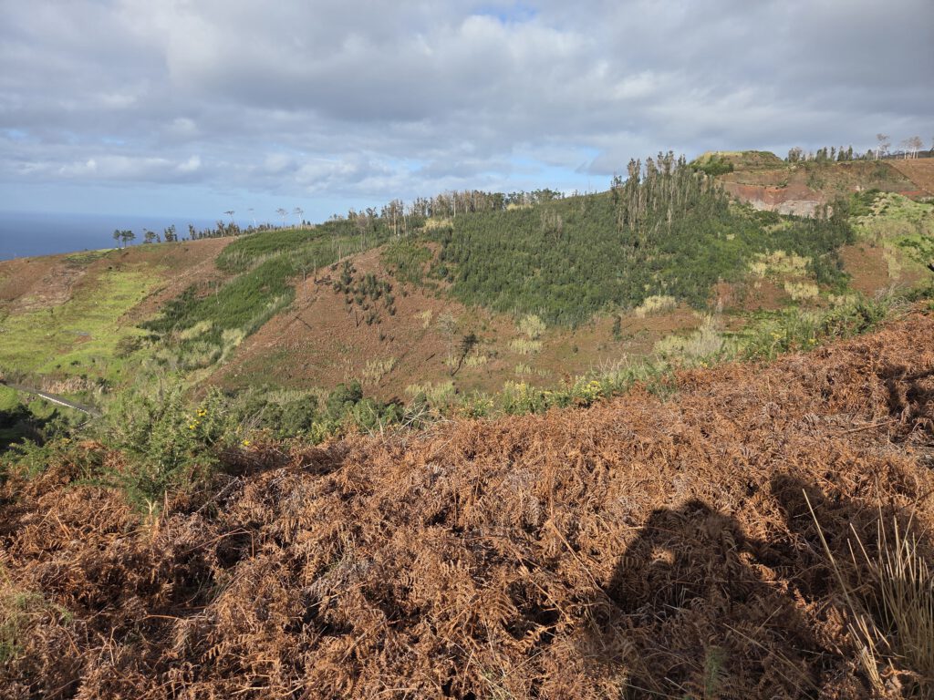 Ein kühler, nieseliger Vormittag. Ideal um Mathe zu lernen, einen Krimi fertig zu lesen, Kaffee zu trinken. Aber dann ... Hat die Reiseleitung die Faxen dick. Nicht nur, dass man sich seit dem 1. Januar für fast alle Wanderwege vorab digital registrieren muss und pro Person über 12 Jahren 4,5 Euro zahlen - es sind auch noch fast alle Wege in der näheren Umgebung gesperrt, wegen Waldbrandschäden, Sturmschäden und überhaupt. Und auf diese Wetterapp ist ja irgendwie auch kein Verlass. Also: Einen Wanderweg tief im Südwesten aussuchen, den man nicht buchen kann oder muss. Und auf gut Glück nach Ponta do Pargo fahren, den westlichsten Ort der Insel.