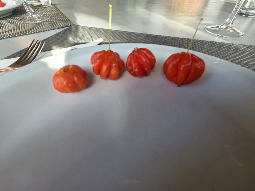 Beim Tasting selbst gibt es dann Pitangas in unterschiedlichen Reifegraden, die sehr faszinierend, lecker und tatsächlich auch unterschiedlich schmecken. Papaya, eine Avocado, die ganz anders ist, als die deutsche Supermarktware (natürlich besser), und Guaven. Und mangels reifer Mangos und Maracujas - gerade keine Saison - bekommen wir Avocado/Bananen/Pitanga und Guaven-Eis. Sehr fein.
