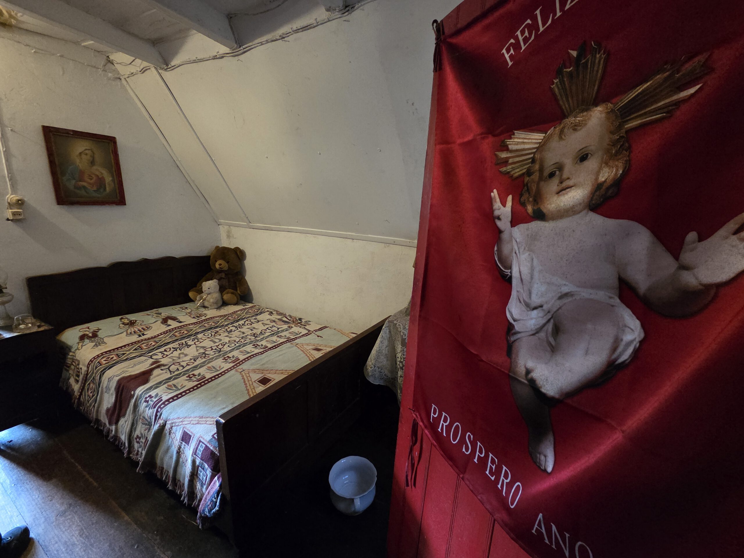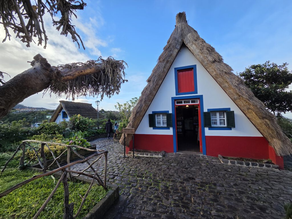 Danach geht es durch inzwischen dicke Wolken nach Santana, noch ein bisschen Kultur schnuppern. In der Kirche ist noch viel Weihnachten mit Krippe. Während in Lissabon der Zauber am 6. Januar vorbei war, ist hier kein Ende in Sicht. Wir tippen jetzt auf Mariä Lichtmess. Im Ort gibt es noch an die 100 historische Casas die Colmo mit Strohdach, in vielen davon wird jetzt Nippes verkauft. Die Reiseleitung stolpert alleine in eines und bekommt direkt einen Likör in die Hand gedrückt: Ein älterer Herr zeigt das Haus seiner Großeltern, das Bett, in dem er geboren wurde, die weiteren Räume - durchaus spannend.