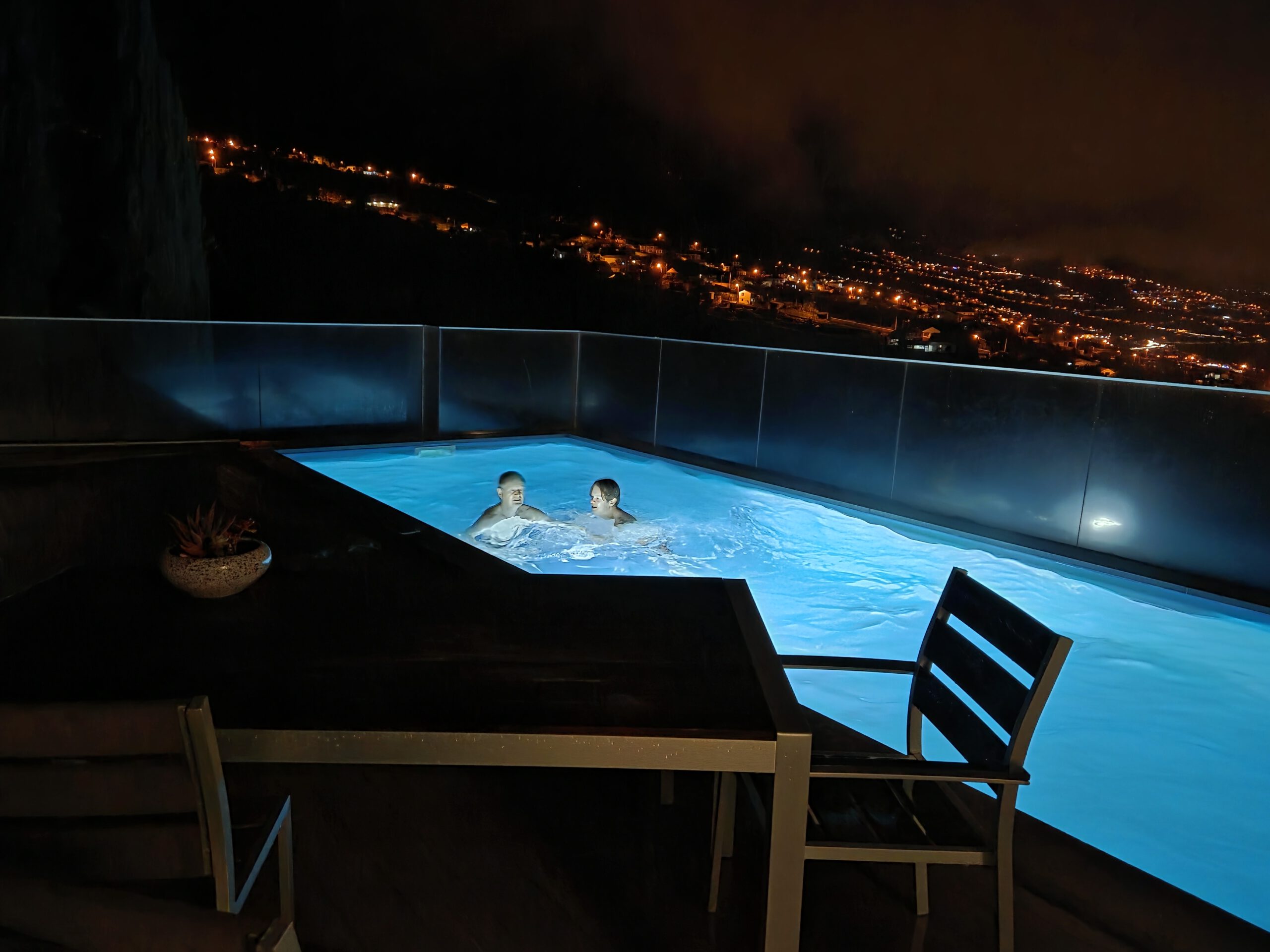 Zurück im Haus: Kaffeetrinken, weiter Reste essen. Kilian und Nicole toben ausgelassen sehr lange im Pool. Gegen 19 Uhr fahren wir nach Calheta, diesmal gehen wir ins Golden Calheta zum Tapas-Essen. Bis auf das eine bemitleidenswerte Restaurant neben der Pizzeria sind wieder alle ganz gut besucht. Danach noch kurz shoppen und hoch zur Vila. Schließlich gehen alle vier nochmal in den Pool - ein schöner Abschluss.