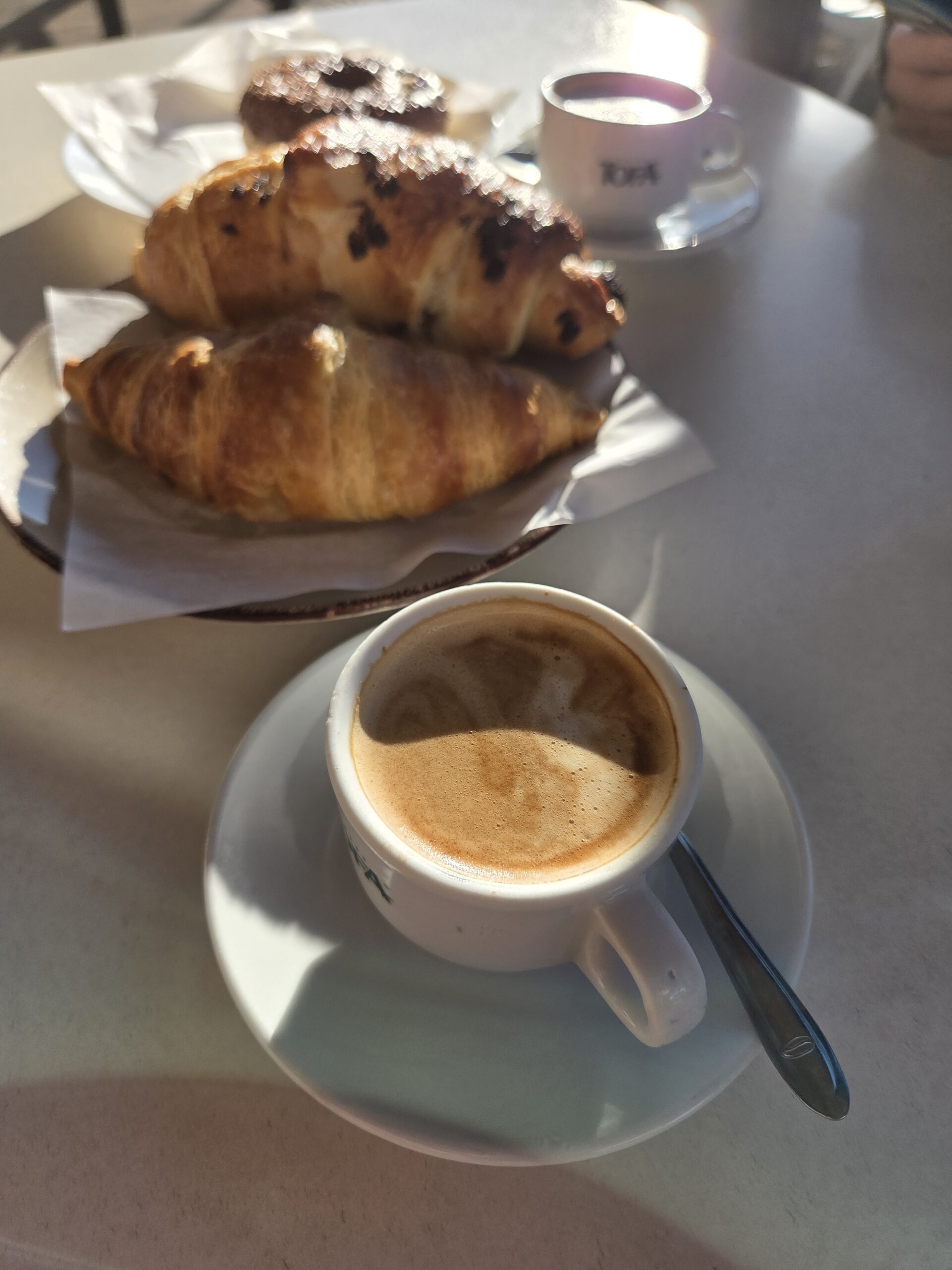 Um 8 Uhr geht der Wecker. Und am Abreisetag strahlt die Sonne, es ist schon morgens warm und die Vögel zwitschern. Frechheit! Um 9.30 Uhr sind wir beim kleinen lokalen Supermarkt und stehen in der Bäckereischlange - Frühstück zwischen vielen Portugiesen, mit einem kleinen Kaffee und einem süßen Teilchen. Danach geht es noch einmal durch die vielen Tunnels zur Mietwagenverleihung. Der VW wird schnell abgegeben und schon bringt uns der Shuttle zum Flughafen. Dort werden wir aber von einer ziemlich langen Warteschlange bei der Gepäckaufgabe ausgebremst - und warum sind eigentlich zwei Schalter für Business geöffnet und nur einer für Economy? Die kleine faltbare Tasche aus Lissabon leistet wieder gute Dienste als zusätzliches Gepäckstück für die schmutzige Wäsche. Allerdings wird sie als zu klein und leicht befunden (!) und muss deshalb beim Sondergepäck abgegeben werden.