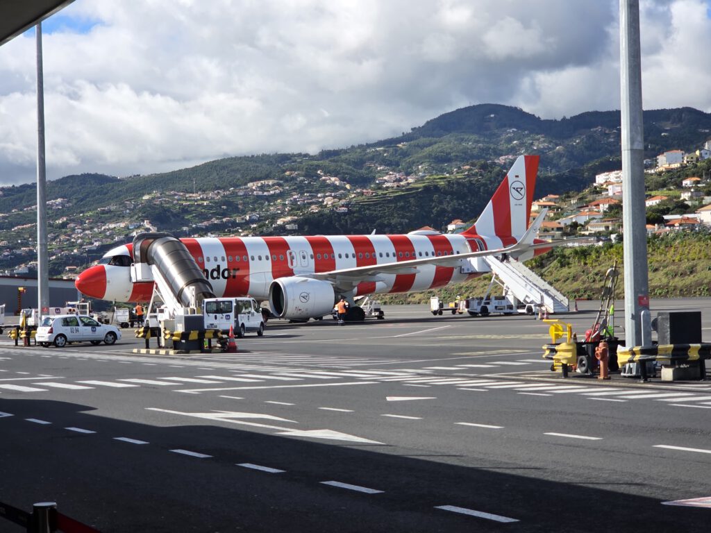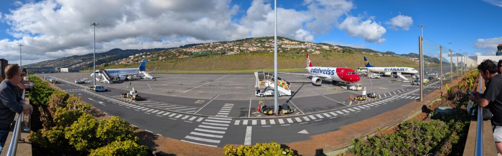 Wir kehren noch einmal bei Burger King ein, weil es dort eine Soße gibt, die unbedingt noch einmal verzehrt werden muss. Dann schauen wir von der Zuschauertribüne aufs Rollfeld. Alles sehr klein und übersichtlich hier. Um 13.30 Uhr soll unser Flug gehen, um 13.15 Uhr bekommen wir das Gate mitgeteilt - erste Indizien dafür, dass wir wohl nicht pünktlich starten. Tatsächlich liegt es diesmal nicht am Wind auf Madeira, sondern am Schnee in Frankfurt, wie der Pilot später erklärt, Nachdem wir zu unserer Maschine gelaufen sind. Am Frankfurter Flughafen komme man nicht so gut mit Winterwetter zurecht, deshalb werden wir statt um 18.30 Uhr wohl erst nach 19 Uhr landen.
