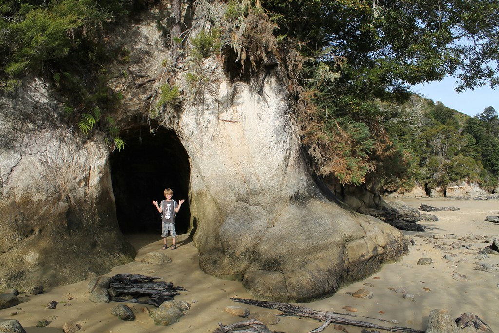 Dann steuern wir das nächste Nachtquartier an: Den Leisure Park in Mapua. Die Lage ist diesmal super, direkt an einer Flußmündung mit großen Kiesel- und Sandstrand und Spielplatz. Das Cafè hat zwar nur noch am Wochenende geöffnet, aber da der Kühlschrank nach einem mütterlichen Lebensmittelkaufrausch sowieso aus allen Nähten platzt, können wir uns gut selbst versorgen. Ein ruhiger Nachmittag und entspannter Abend.
