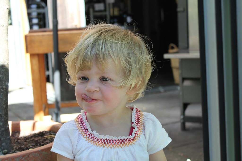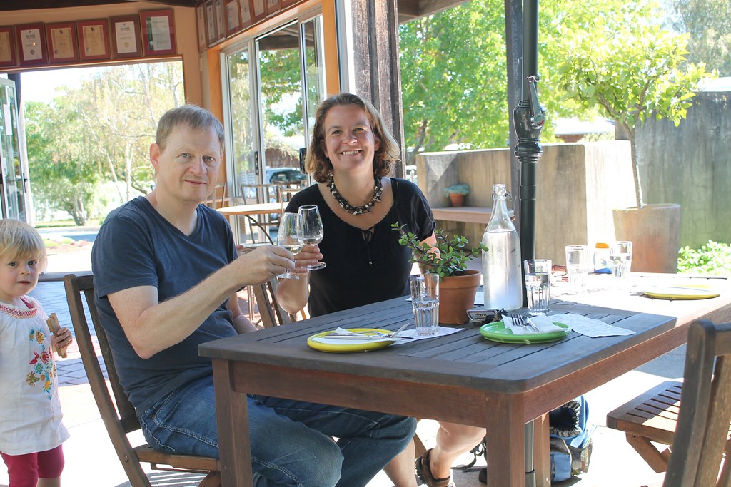 Nachdem das mit der Weinprobe in Martinborough ja eher knifflig war, nehmen wir einen neuen Anlauf. Die Öffnungszeiten des Kahurangi Estate, bzw des Bistros, haben wir im Internet geprüft und so rollen wir um 11.30 auf den Hof. Die Bedienung ist superfreundlich und bringt den Kindern erstmal eine Holzeisenbahn zum Spielen. Wir suchen uns für zwei Dollar (1,20 Euro!) pro Person jeweils vier Weine aus. Dazu bestellen wir zwei Pizzen, die sogar italienisch anmuten, plus zwei "echte" Glas Wein Die Sonne strahlt, die Kinder spielen friedlich, Nicole probiert auch noch einen Portwein und einen Sherry. Die Bedienung ist übrigens sehr mitgenommen, als ein Senior sich erst durch vier Weine trinkt (es sind ja immer nur zwei Schluck bei der Weinprobe) und sich danach weigert, die zwei Dollar zu bezahlen. So etwas ist zum einen wirklich rüde und weht zum anderen die stets freundlichen Kiwis natürlich doppelt um.