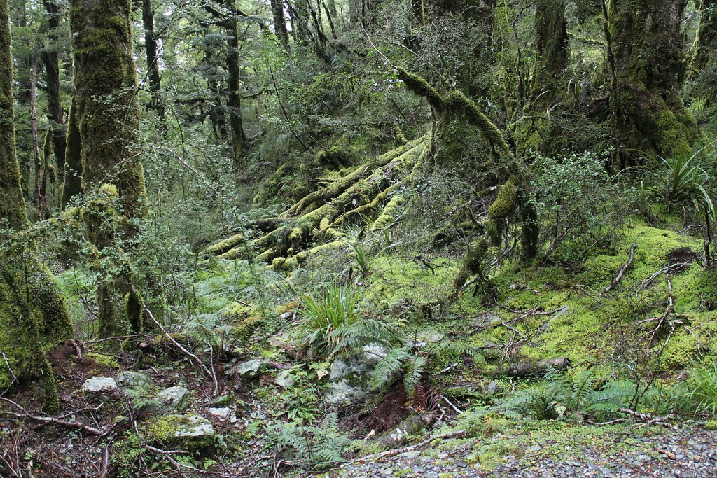 Dann geht es über den Haast Paß: So hoch die Berge nebenan, so sanft die Ansteigung, der höchte Punkt liegt nur auf etwa 600 Metern. Dabei verlassen wir die australische Erdplatte und wechseln zur ozeanischen, genau am Schnittpunkt erhebt sich das Gebirge. Eine Tatsache, die Kilian sehr fasziniert. Spannend wäre auch die Sicht unterwegs, auf weite Flußtäler und moosbehangene Wälder - aber das ist ein echter Regentag.