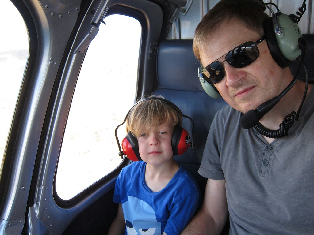 Ein guter Moment zum Abheben: Gerald bekommt als nachgeholtes Weihnachts/vorgezogenes Geburtstagsgeschenk einen Helikopterflug mit Berglandung. Da er nicht alleine hoch will, es aber auch nicht wirklich möglich wäre, beide Küken unten zu lassen (und die Reiseleitung schon mit der mentalen Vorbereitung auf den Rückflug nach Deutschland vollkommen ausgelastet ist) - fliegt Kilian mit.